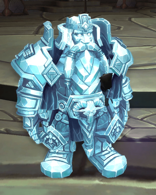 With the events leading up to the Cataclysm, the world itself began to shake. When violent quakes tore through Khaz Modan, Magni sought to understand the turmoil. The discovery of Titan tablets from Ulduar only deepened his determination to protect his people and their world. He gathered Ironforge’s greatest minds and performed a ritual deep beneath the city, hoping to commune with the earth and learn its secrets. Instead, disaster struck, and his body turned to living diamond. His voice now silenced, his form fused into the heart of Ironforge.