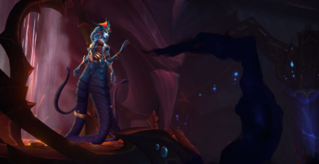 N’Zoth offered her a bargain: he would save her and her followers from drowning, but they would have to serve him. Still struggling and desperate for power, Azshara accepted. The Old God’s dark magic twisted the dying elves into the serpentine, amphibious horrors known as the Naga. Even in her monstrous new form, Azshara retained her crown, ruling over the deep sea empire of Nazjatar for ten thousand years, slowly building her strength in the shadows.