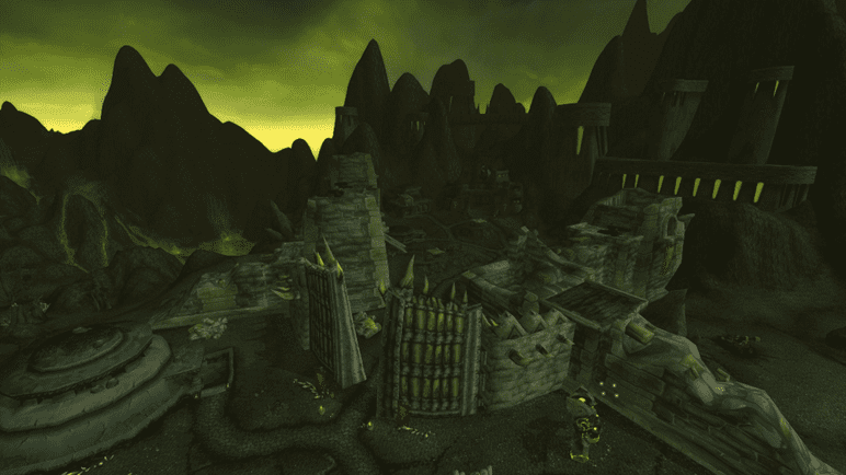 When you first step into the Outland (original TBC) version of Shadowmoon Valley, the first thing you notice is the lack of a sky. There is no blue tint, nor anything. There is only a sickly blackish-green void, hanging precariously above your head. The geography itself is hostile. The ground is cracked, bleeding neon-green fel lava.