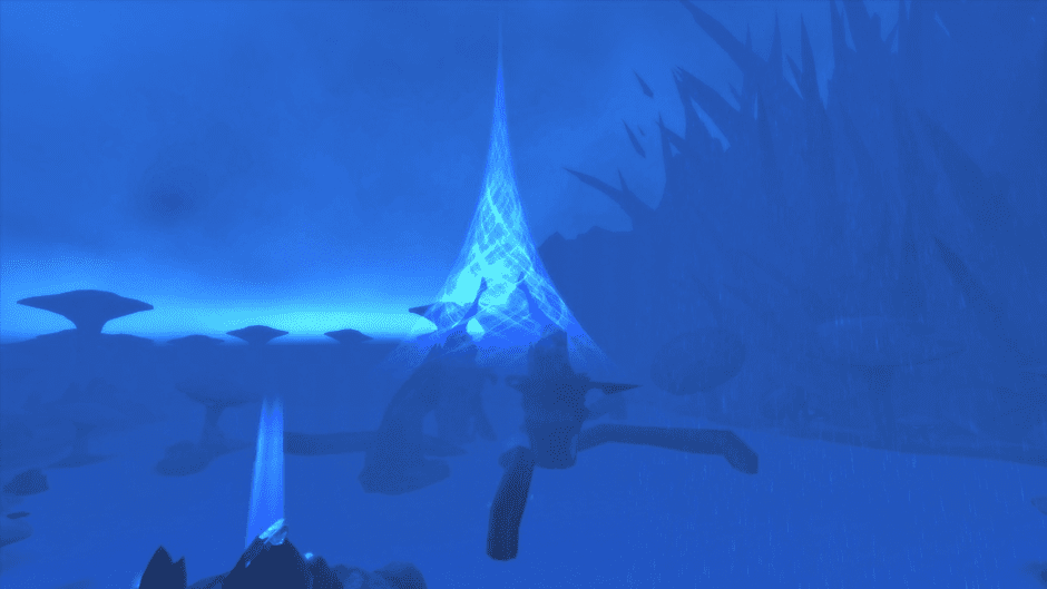 The sky is permanently overcast, casting a twilight gloom over the swamp that makes the glowing flora pop. The giant mushrooms (which are actually trees in this ecosystem) tower over you on some parts, creating a natural canopy that shields you from the Void above. And then, there is the rain. It never stops. It’s a constant, gentle drizzle that creates a soothing white noise, contrasting sharply with the screams of demons we left behind in the previous zone.